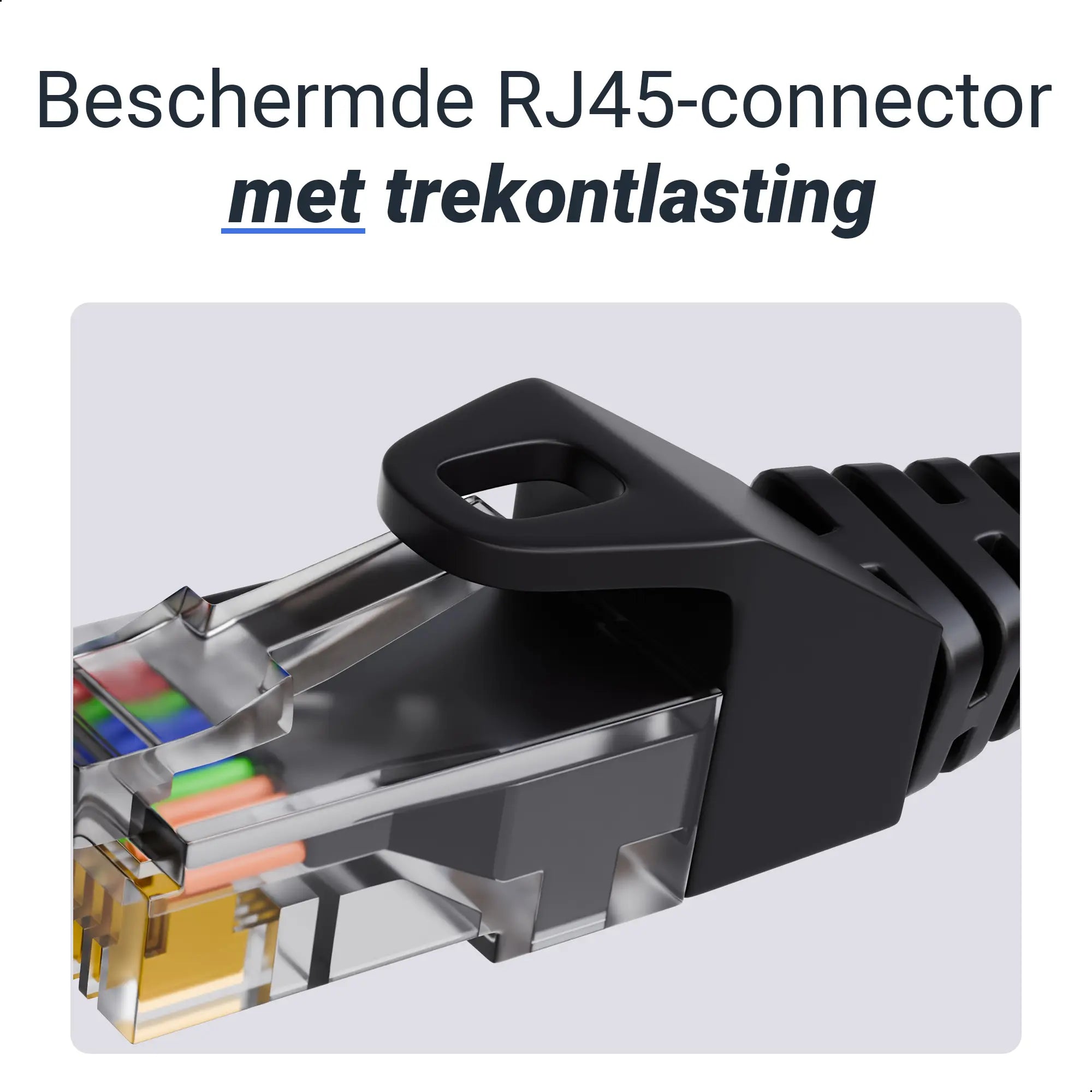 Deze internetkabel ondersteunt netwerksnelheden tot 10 Gbps over een afstand van ongeveer 100 meter.